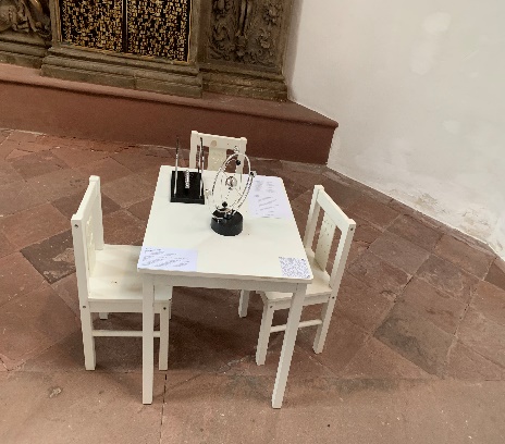 Nimm Platz und führe ein Gespräch mit einem „digitalen Seelsorger“. Über das iPad kannst du mit einer KI in einen Dialog treten: Sie hört zu, stellt Fragen und lädt zum Nachdenken ein. Doch kann eine Maschine echte Seelsorge leisten? Diese interaktive Arbeit untersucht, wie sich Trost, Glaube und Empathie in virtuellen Räumen verändern. Du bleibst anonym – die KI speichert keine persönlichen Daten und ist kein Ersatz für eine menschliche Seelsorge oder psychotherapeutische Hilfe. Bei akuten Sorgen oder Krisen wende dich bitte an die Pfarrerinnen und Pfarrer vor Ort oder die Telefonseelsorge. Welche Erfahrungen machst du, wenn Algorithmen auf deine Gedanken antworten? Was liegt jenseits von analoger Begleitung?