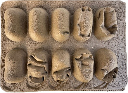 Identitätsmerkmale, wie z. Bsp. Fingerabdrücke oder Alltagsobjekte werden eingescannt und verfremdet. Durch den Druck mit einem 3D-Printer werden die gegensätzlichen Elemente wieder homogenisiert, so dass eine assoziative Spannung entsteht.